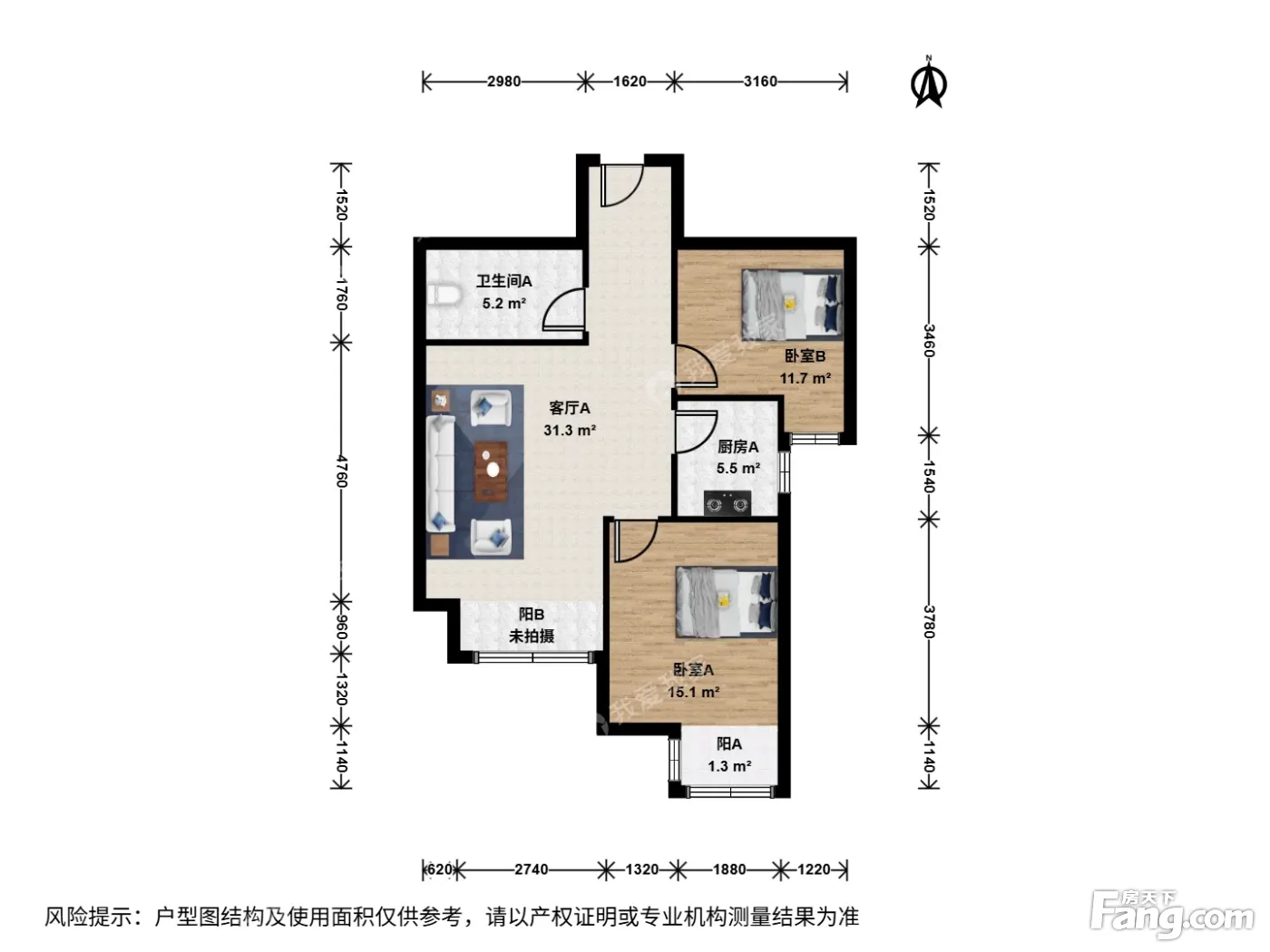 户型齐全,主打南北通透,客厅朝南二居
