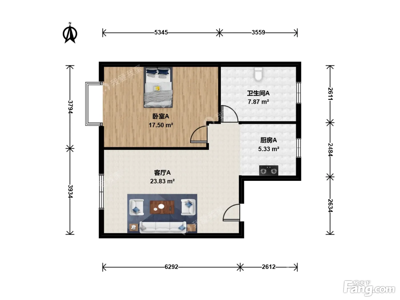 户型齐全,主打明厨,客厅朝南,主卧朝南二居