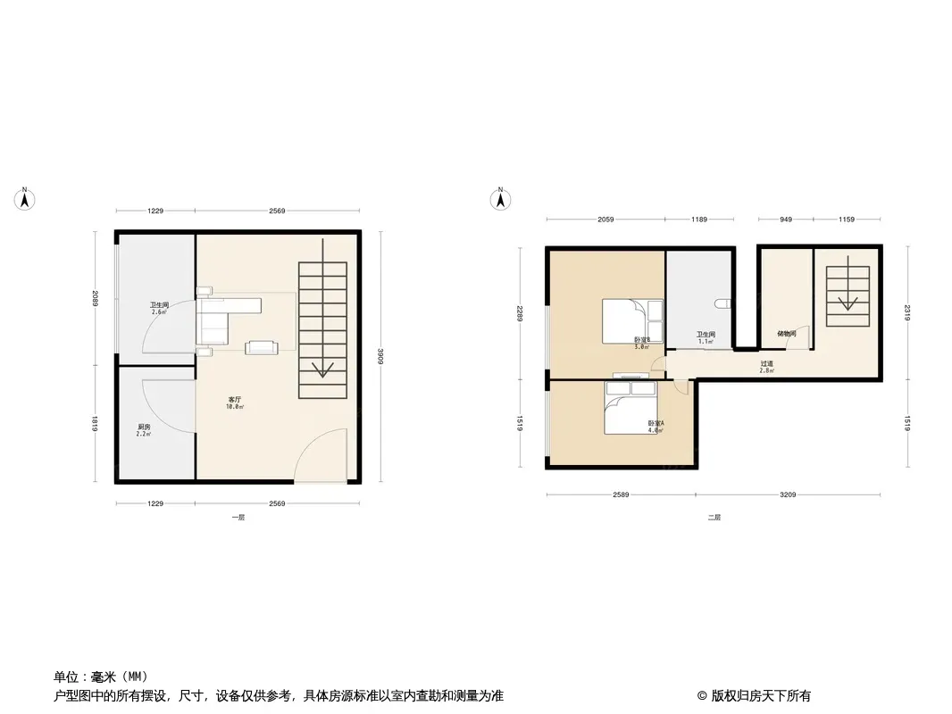 此房无抵押.无贷款.房本在手.业主置换.诚心出售.付款快.价格还能聊.,随时签约. 小区共计19栋楼,分为南北区,此房为南北向2室1厅2卫,建筑面积为57平米,正规两居室.楼下客厅,餐厅,厨房,卫生间,楼上两间卧室,卫生间,衣帽间,布局合理,没有浪费面积。