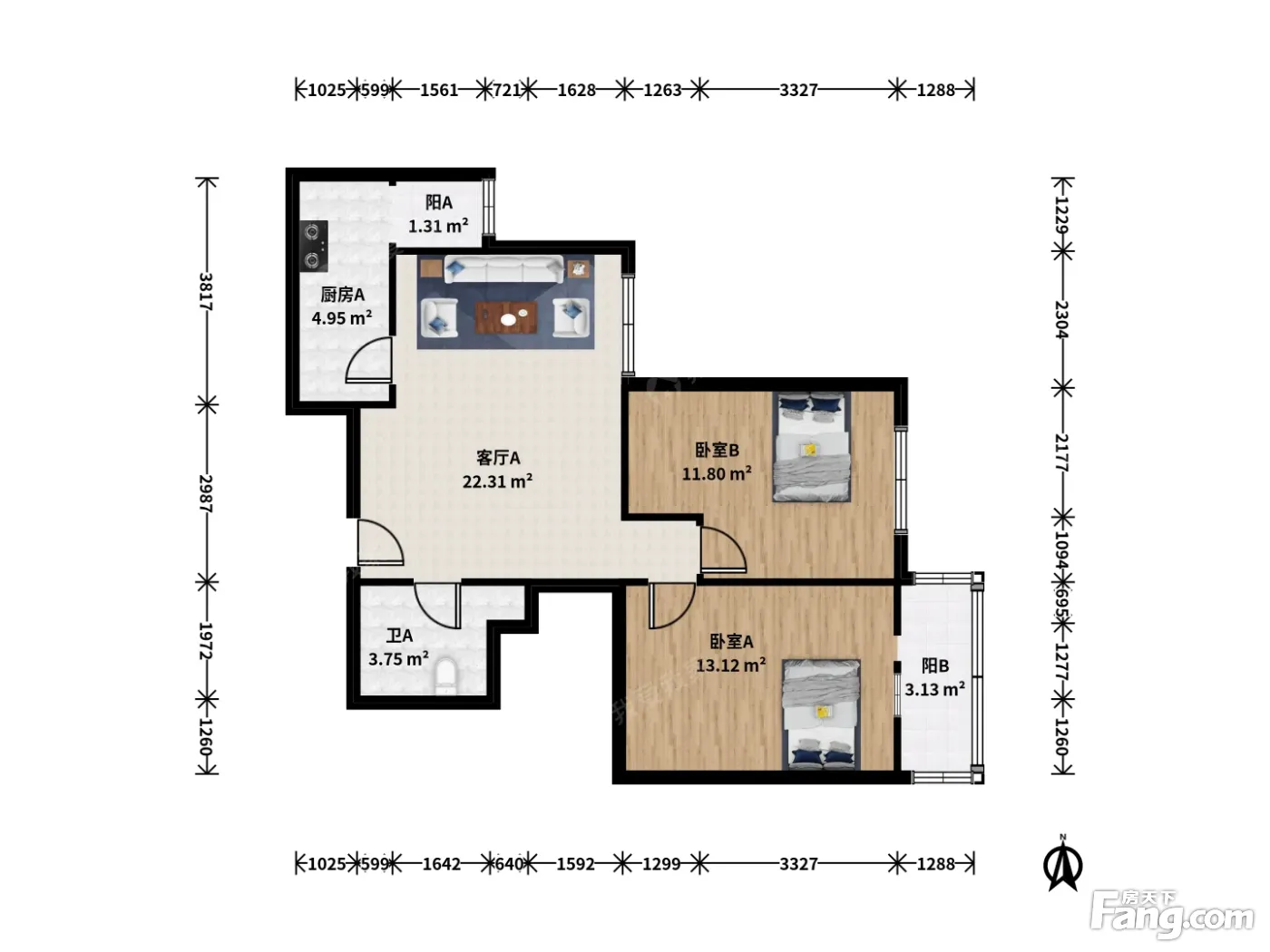 户型齐全,主打客厅朝南,双阳台二居