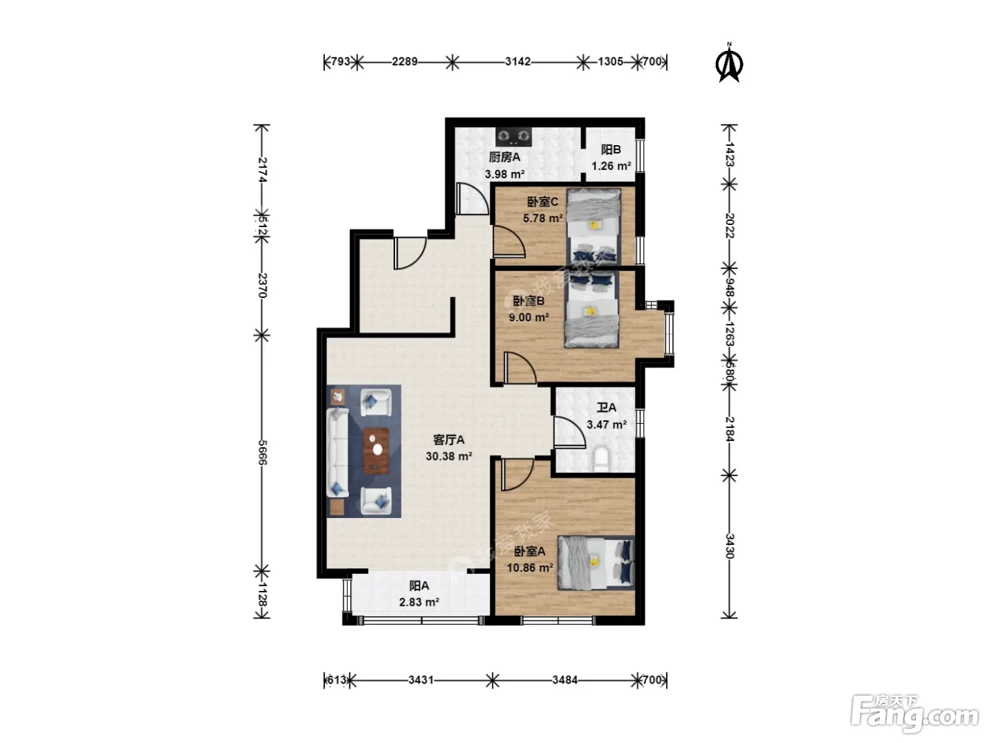 户型介绍:此房户型为3室1厅1卫,建筑面积为99.91平米,朝向为东南。