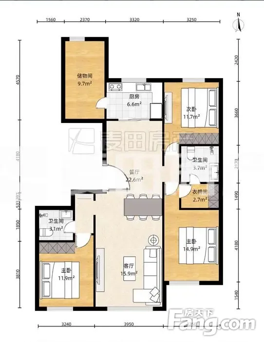 户型齐全,主打户型方正,独立衣帽间,明卫,明厨,客厅朝南,全明格局,双卧朝南,主卧朝南三居