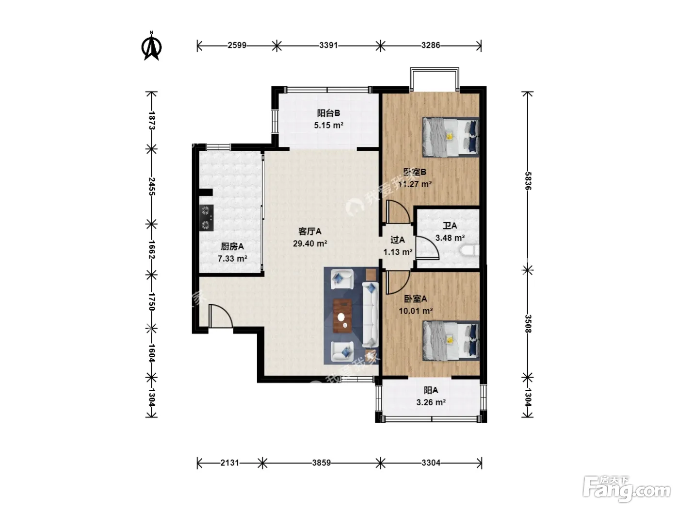 户型齐全,主打户型方正,客厅朝南二居