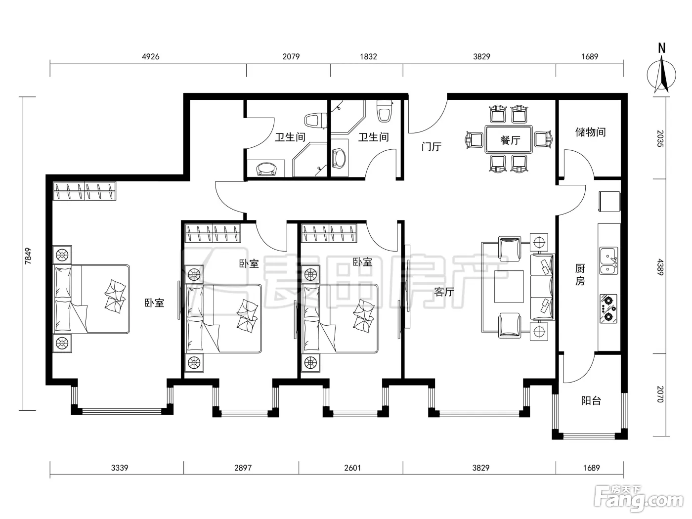 户型齐全,主打户型方正,明卫,独立衣帽间,双卧朝南,主卧朝南三居
