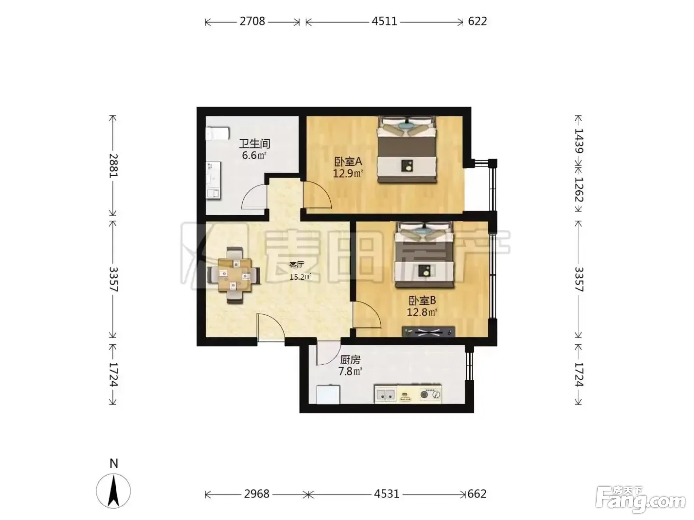 户型齐全,主打客厅朝南,双卧朝南二居