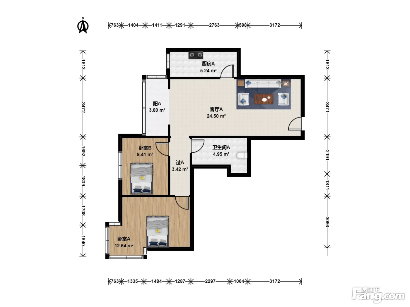 户型齐全,主打明厨,客厅朝南二居