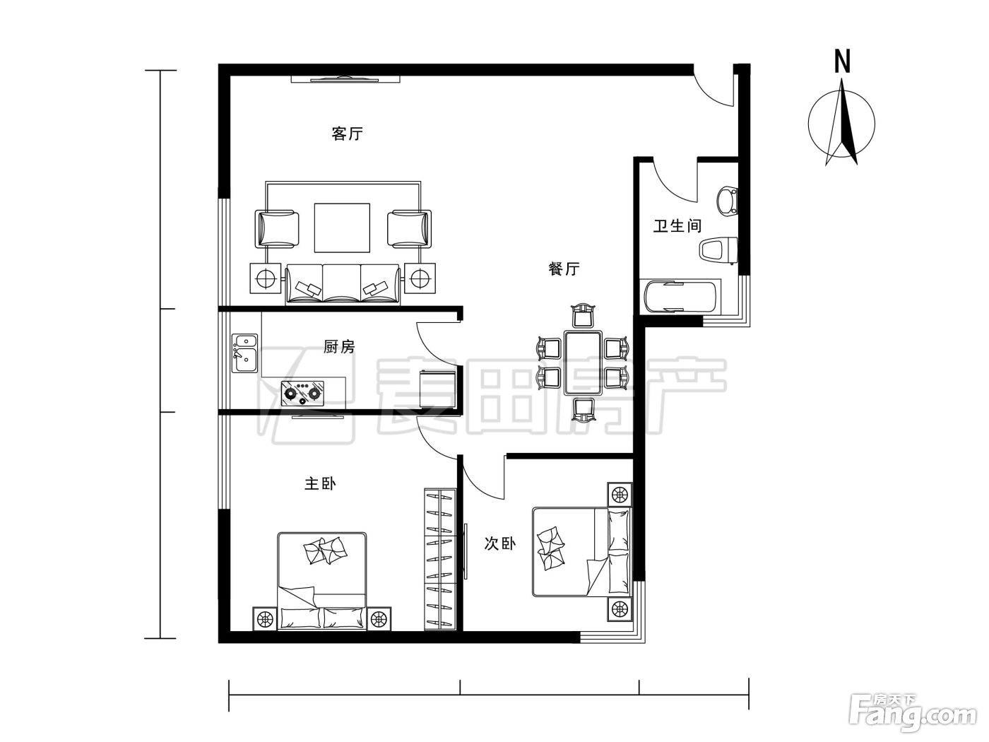 户型齐全,主打户型方正,明厨,客厅朝南,双卧朝南二居