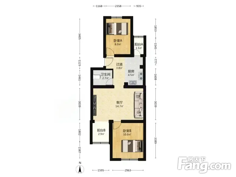 户型齐全,主打户型方正,明厨,主卧朝南二居