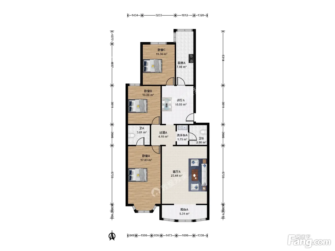 3室1厅2卫
