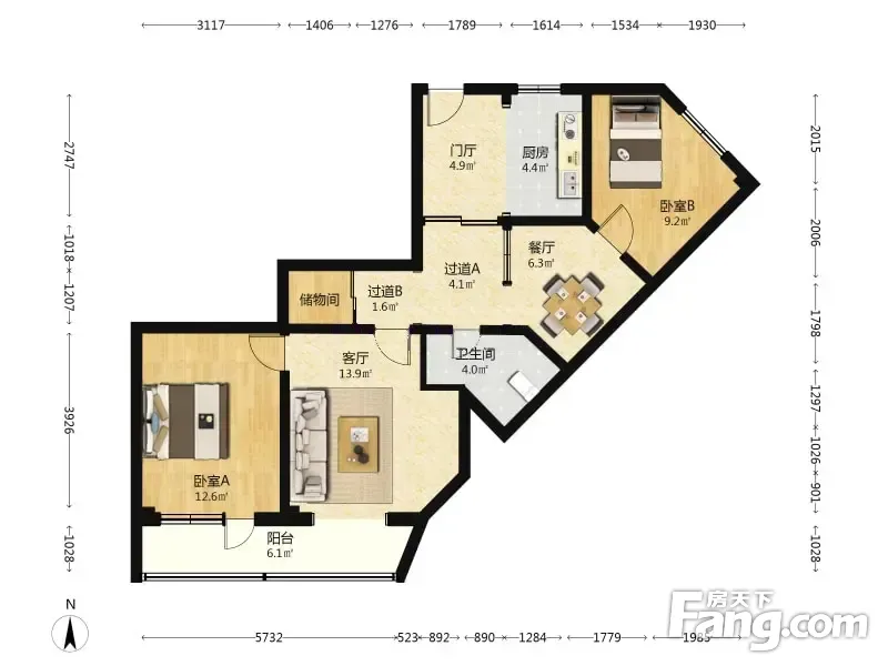 户型齐全,主打户型方正二居