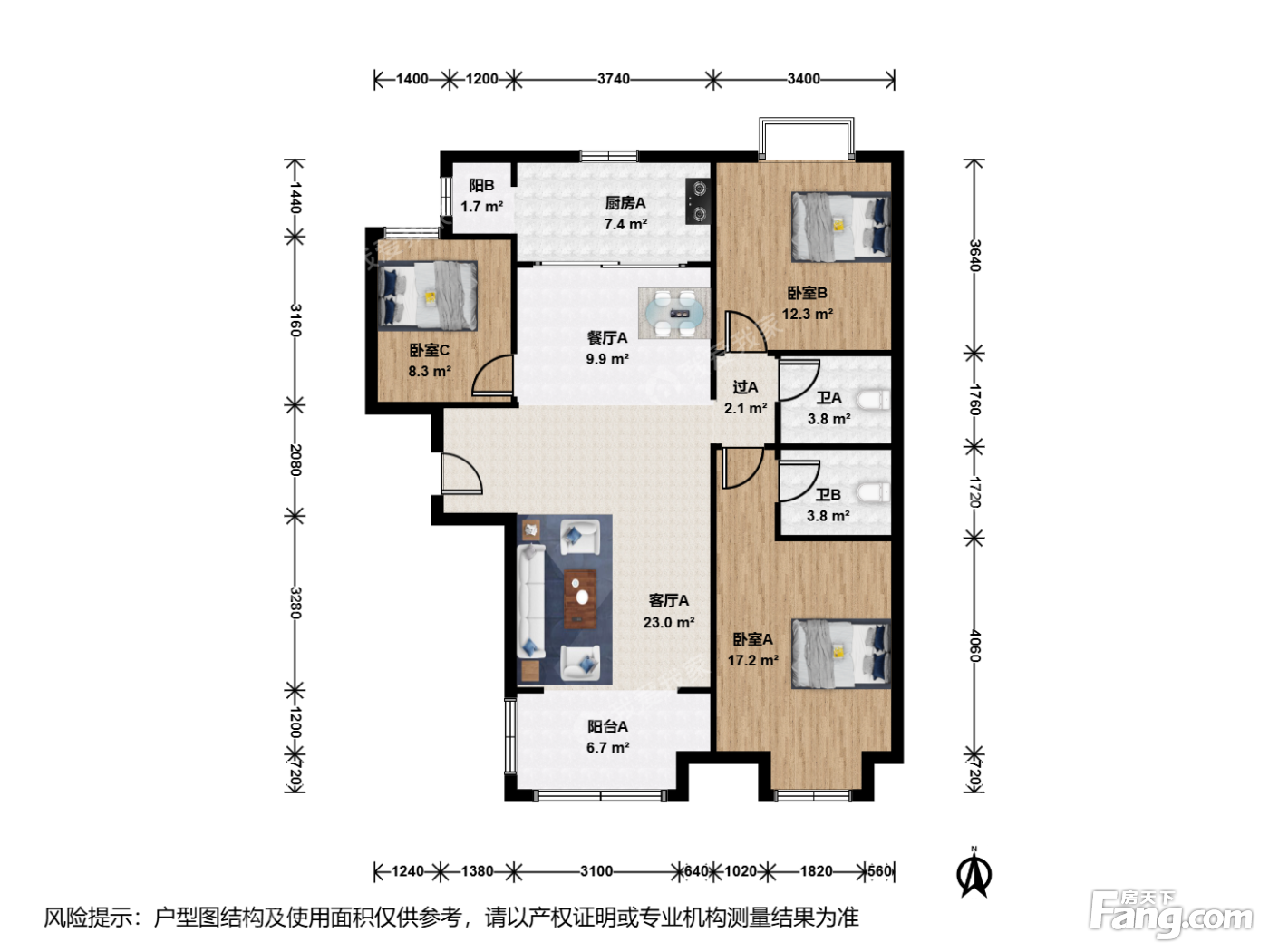 户型介绍:此房户型为3室2厅2卫,建筑面积为126.25平米,朝向为南北。