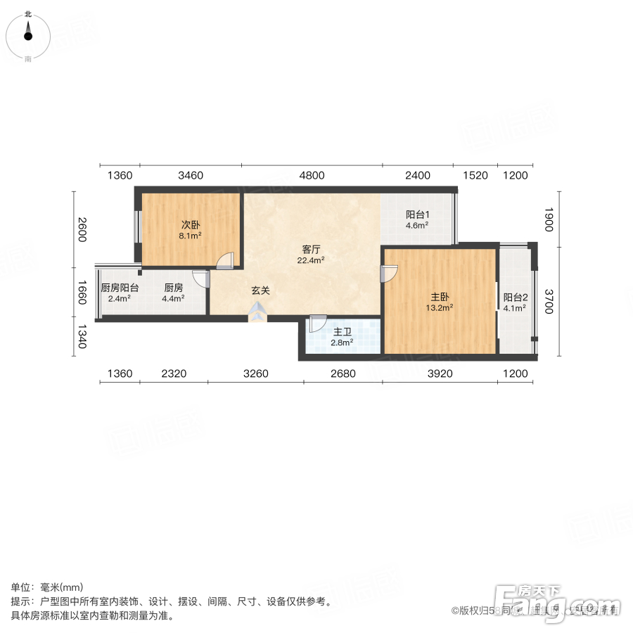 户型齐全,主打户型方正,明卫,客厅朝南,双阳台二居