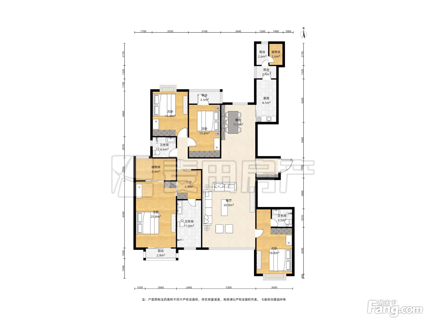 户型齐全,主打户型方正,独立衣帽间,明卫,客厅朝南三居