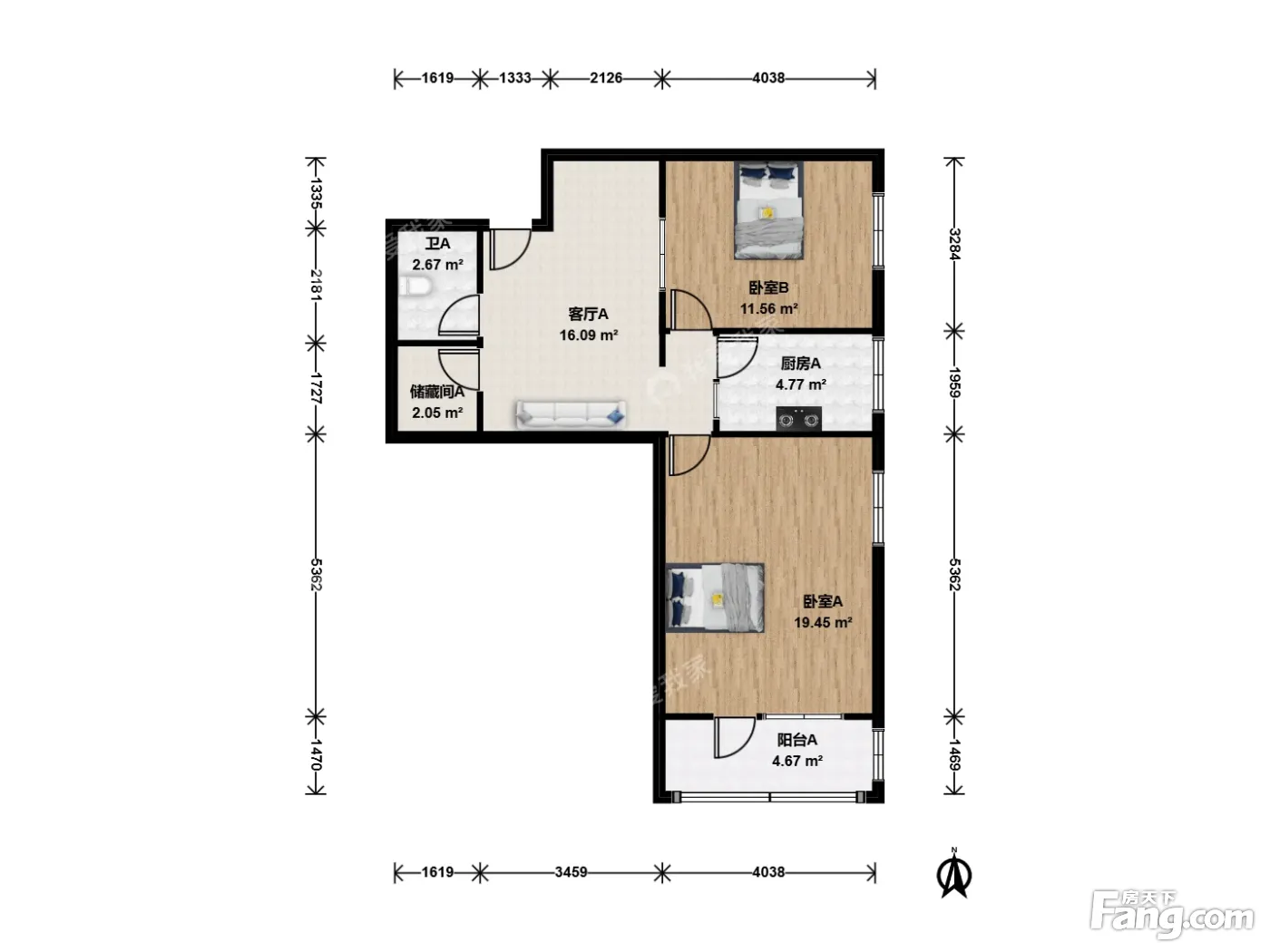 小关北里24号院2室1厅南东