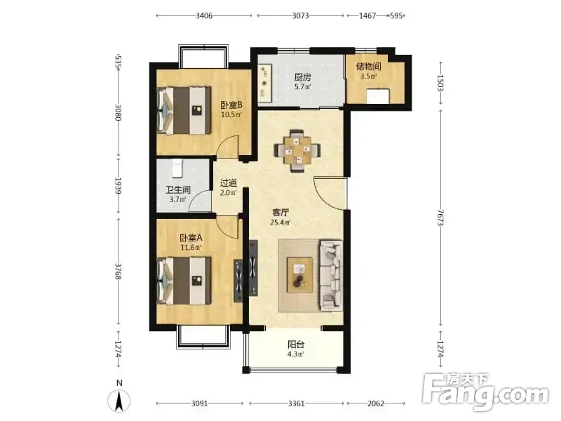 江南山水 2室1厅 南 北
