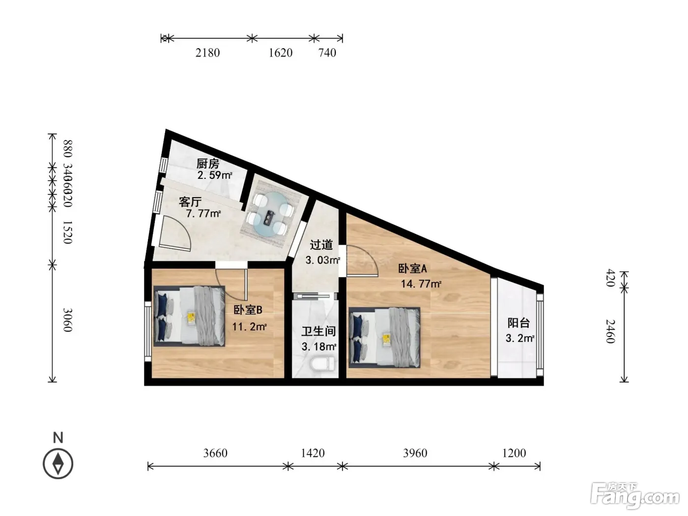 户型齐全,主打明厨,客厅朝南二居