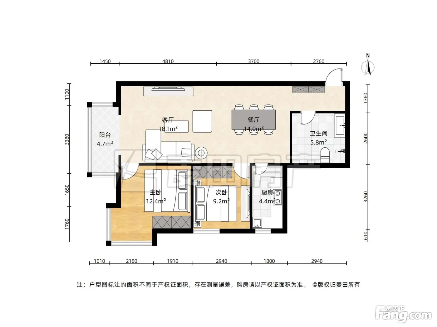 、107平-155平的户型方正,独立衣帽间,明厨,明卫,客厅朝南,全明格局的三居