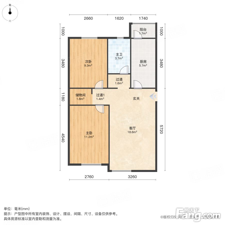 户型齐全,主打明厨,客厅朝南,主卧朝南一居