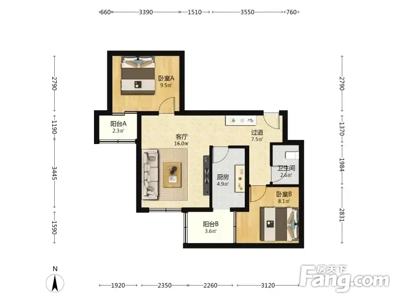 2室1厅1卫