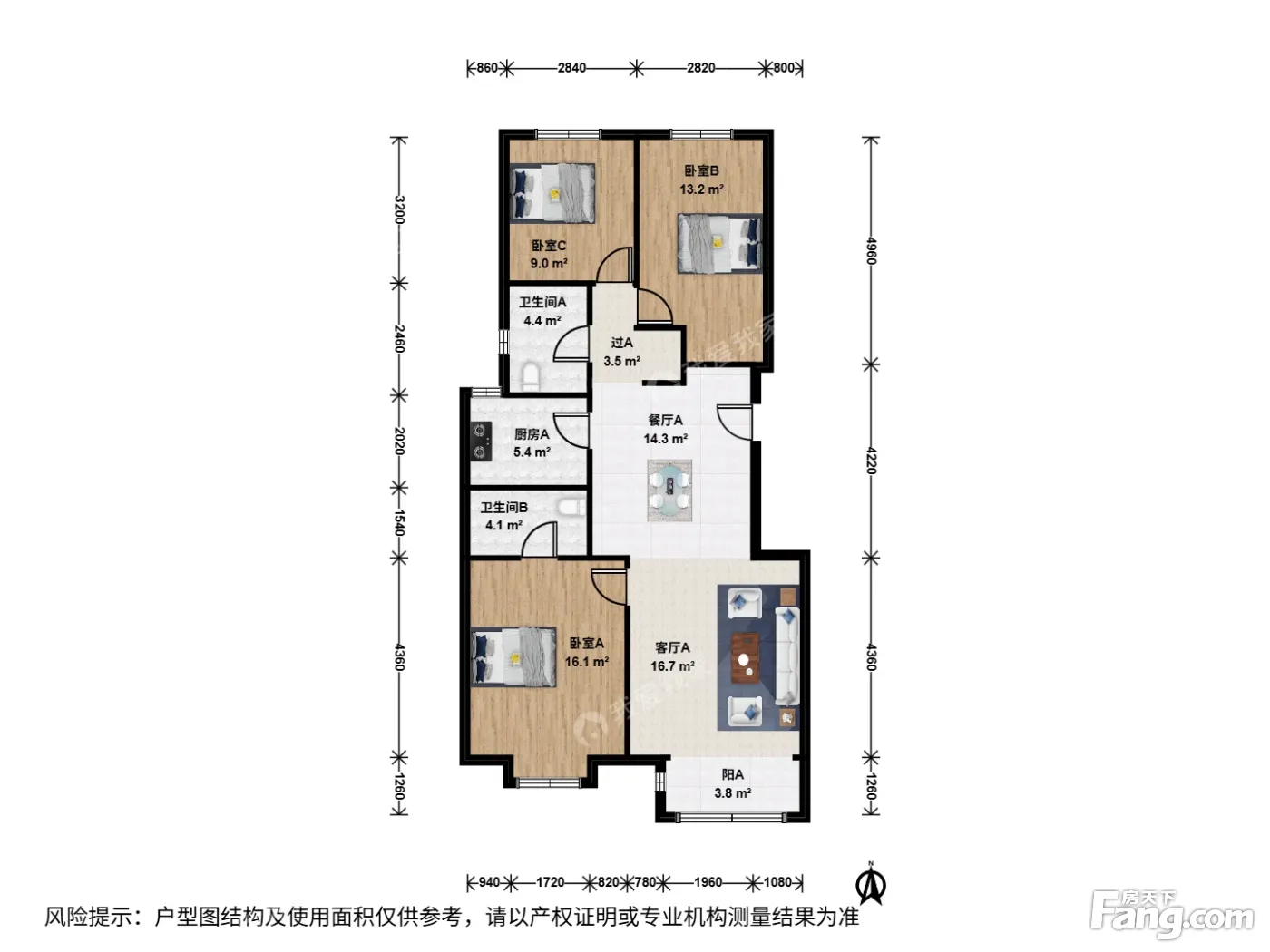 户型齐全,主打南北通透,全明格局,户型方正,采光充足三居