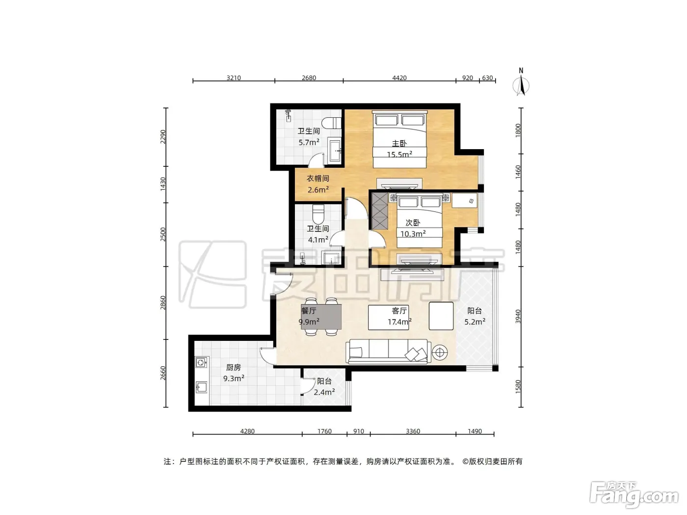户型齐全,主打明卫,客厅朝南,主卧朝南三居