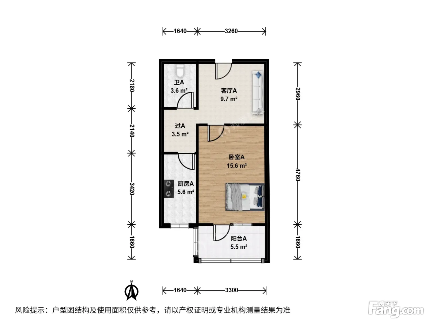 榆苑公寓1室1厅南