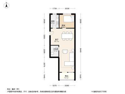 户型介绍:此房为朝南向带客厅一居室,户型方正,没有浪费面积,利用率高,卧室朝南带阳台,厨房和卫生间的面积都不小,不会觉得压抑。