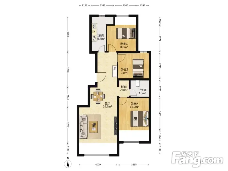 户型齐全,主打客厅朝南三居