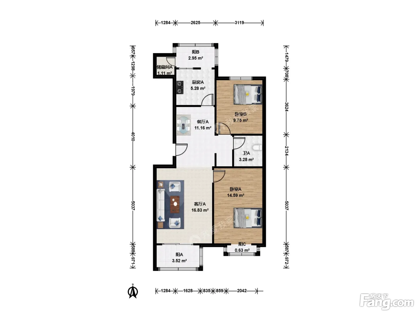 户型齐全,主打户型方正,双阳台二居