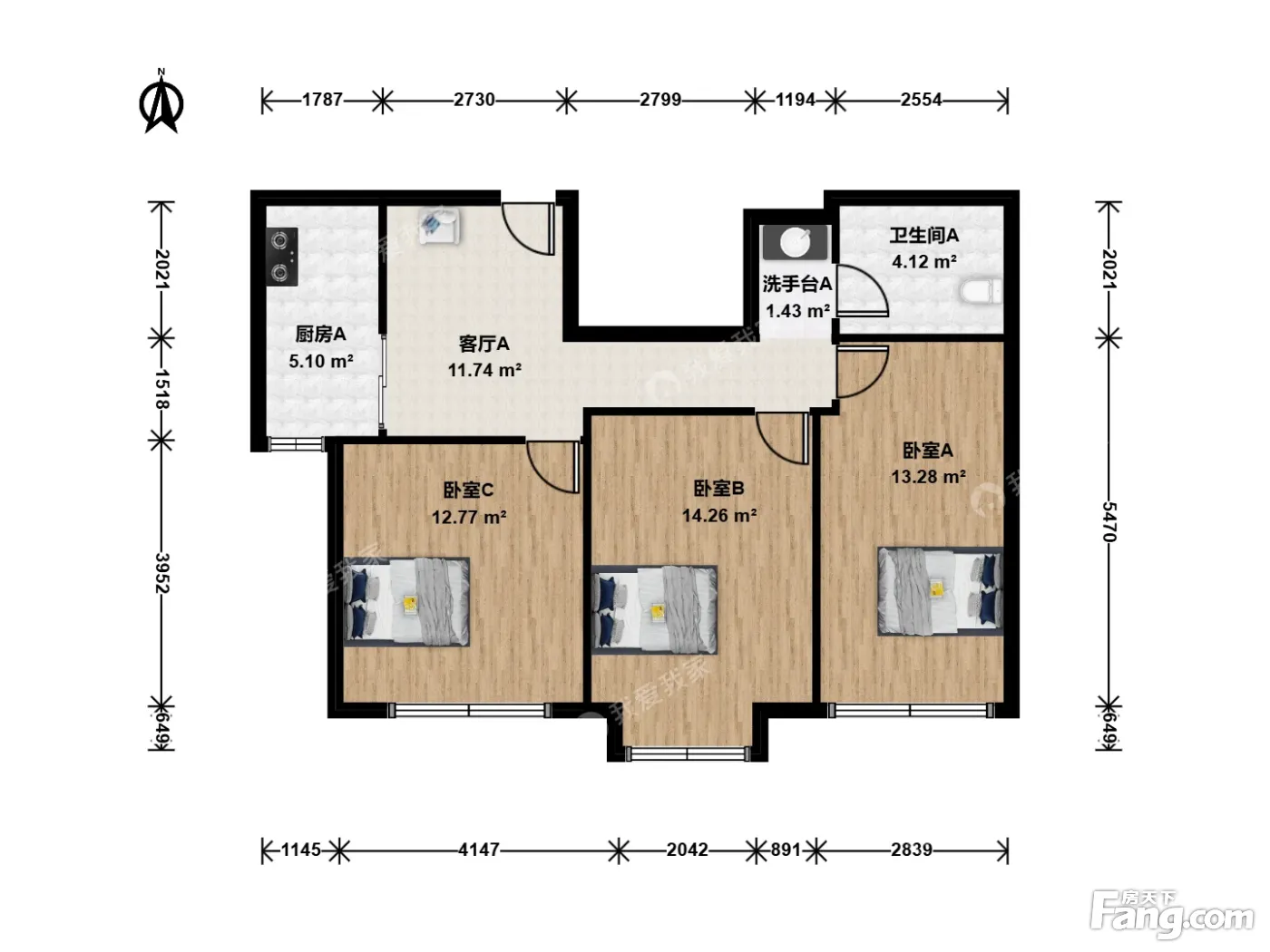 户型齐全,主打户型方正,明厨,主卧朝南二居