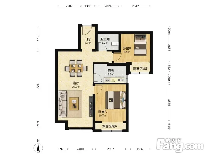 户型齐全,主打全明格局,动静分离二居