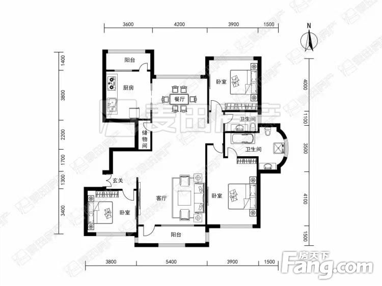 户型齐全,主打户型方正,明厨,明卫,客厅朝南,全明格局,双阳台三居