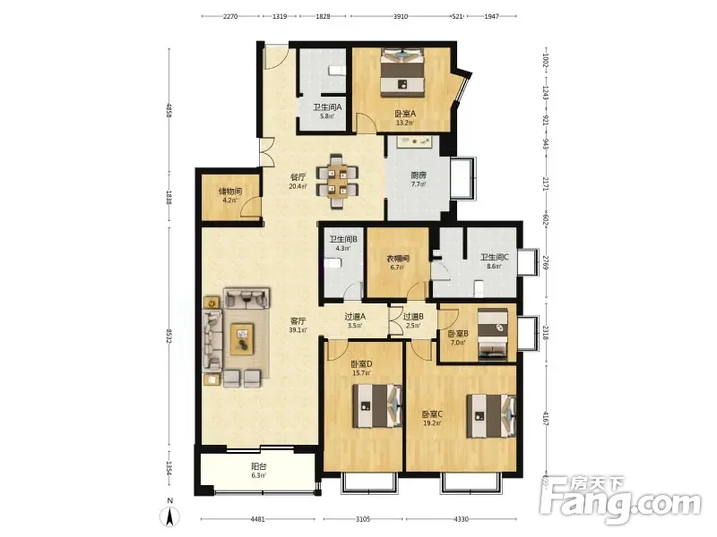 房屋拥有相对宽松的尺寸,布局通透,动静分离,设计豪华