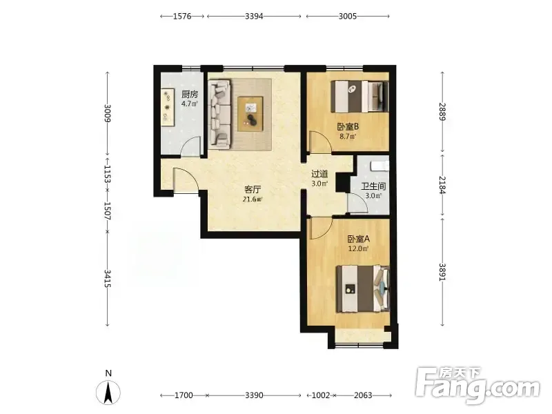 住总万科橙2室1厅南北