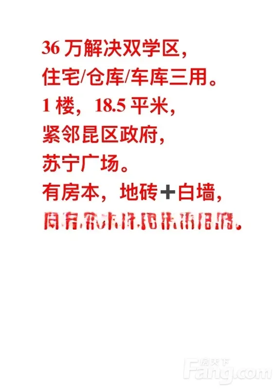 36万解决双学区,可住宅/仓库/车库三用,青七唯 一有房本三用房。1楼,18.5平米,紧邻昆区政府,苏宁广场。地砖➕白墙,自有非中介。非诚勿扰。