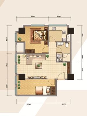 户型齐全,主打户型方正,开放厨房,大面宽阳台一居