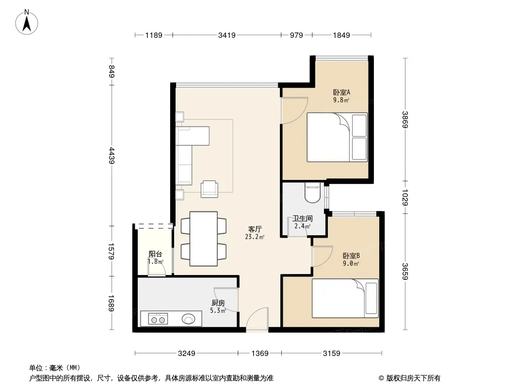户型齐全,主打户型方正,双阳台,双卧朝南二居