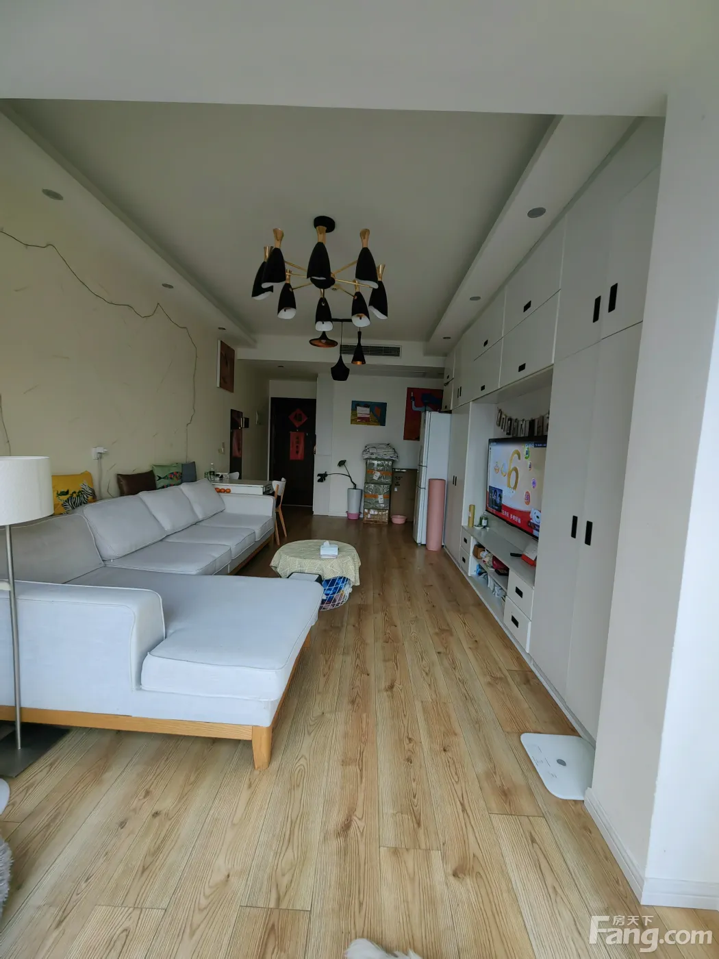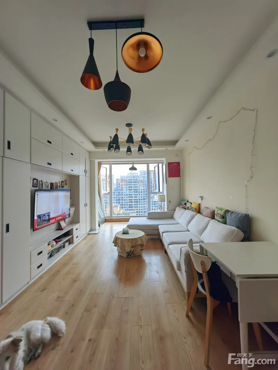 房屋爱护得很好,客厅有一整面墙的电视柜子可供储存物品,全景落地窗,视野和楼层很好,朝南,所以冬暖夏凉,一点都不会潮湿,面向中庭景观区,视野无敌,很适合独居。