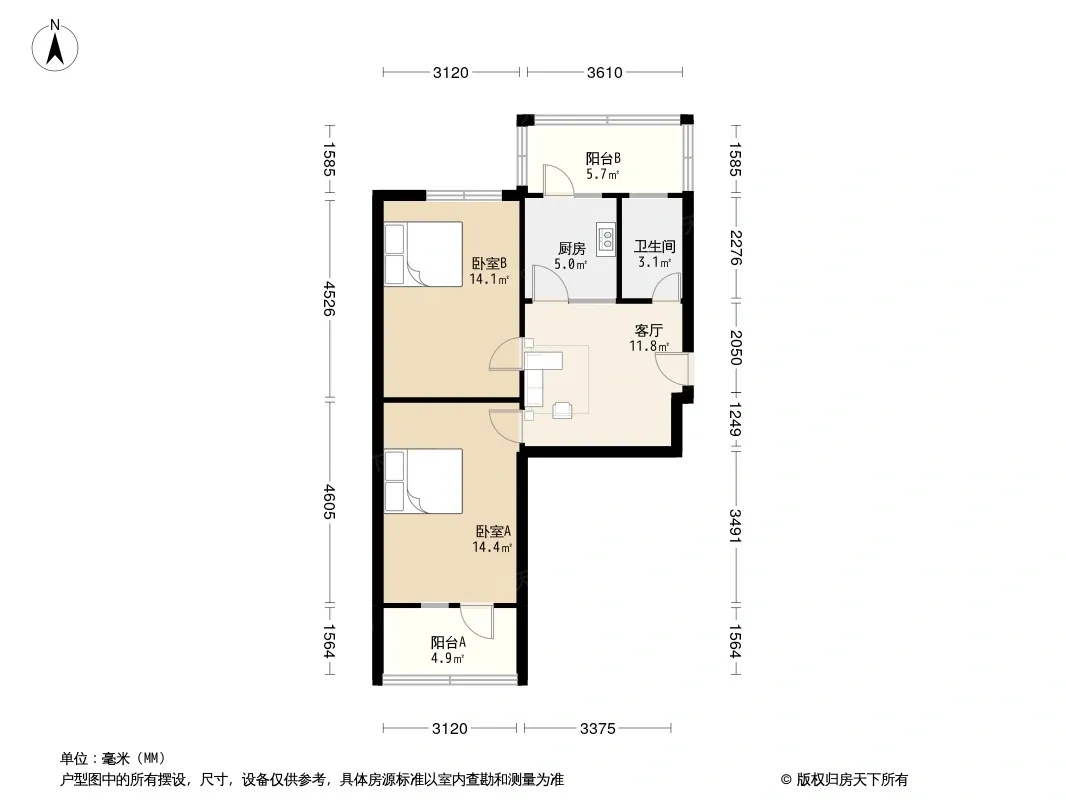 户型齐全,主打双阳台,主卧朝南二居