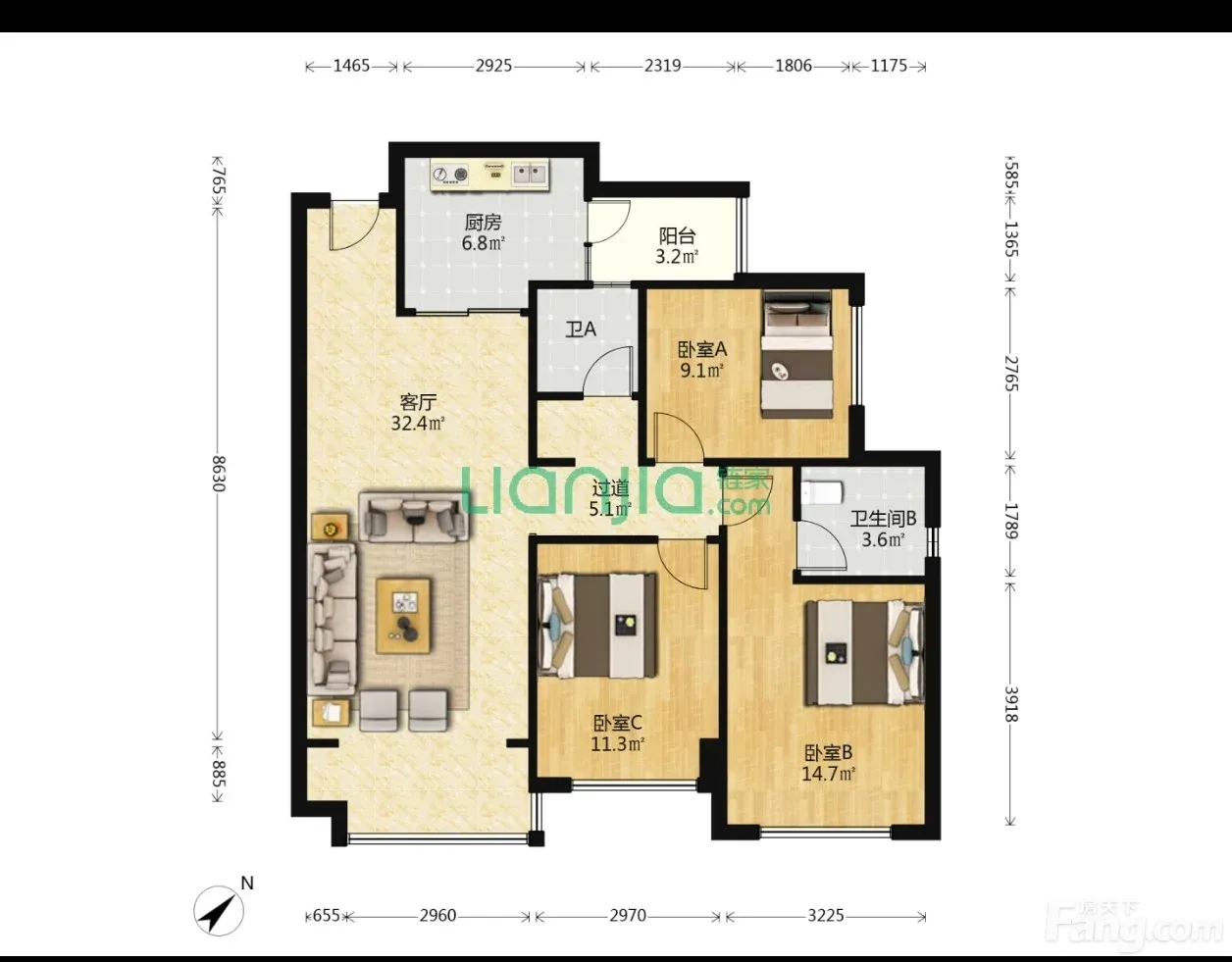3室2厅1卫