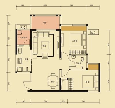 户型齐全,主打主卧带卫,户型方正,全明格局,双阳台三居