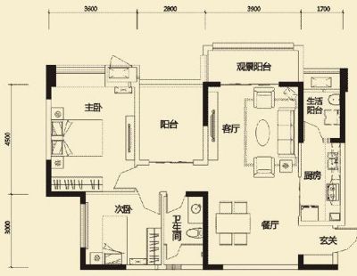 户型齐全,主打明厨,明卫,客厅朝南,全明格局三居