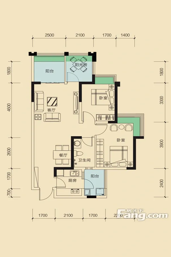 户型齐全,主打明厨,双阳台,双卧朝南三居