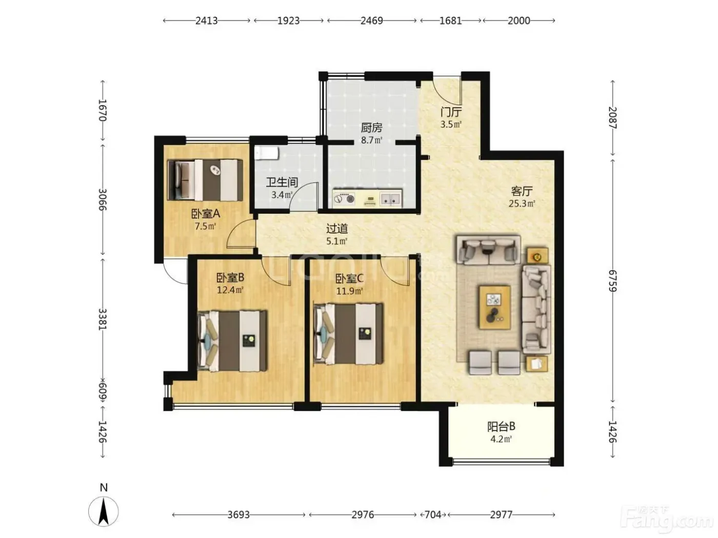3室2厅1卫