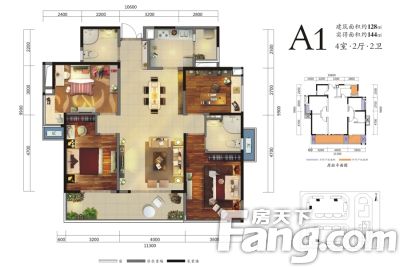 户型齐全,主打户型方正,主卧带卫,大面宽阳台四居