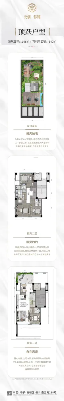 天创荣耀具有国内中心城市少有的无障碍城市交通快速体系:城市主干道——天府大道纵贯其中;地铁1号线专设站口;红星路南延线、绕城高速、新元华路等快速通道分别连通市区路网。城市公交骨干线定点保障、4条高铁环绕。离新的火车南站仅3公里,轨道交通与路面交通便捷换乘。的城市交通体系为项目的发展提供了时空保障。