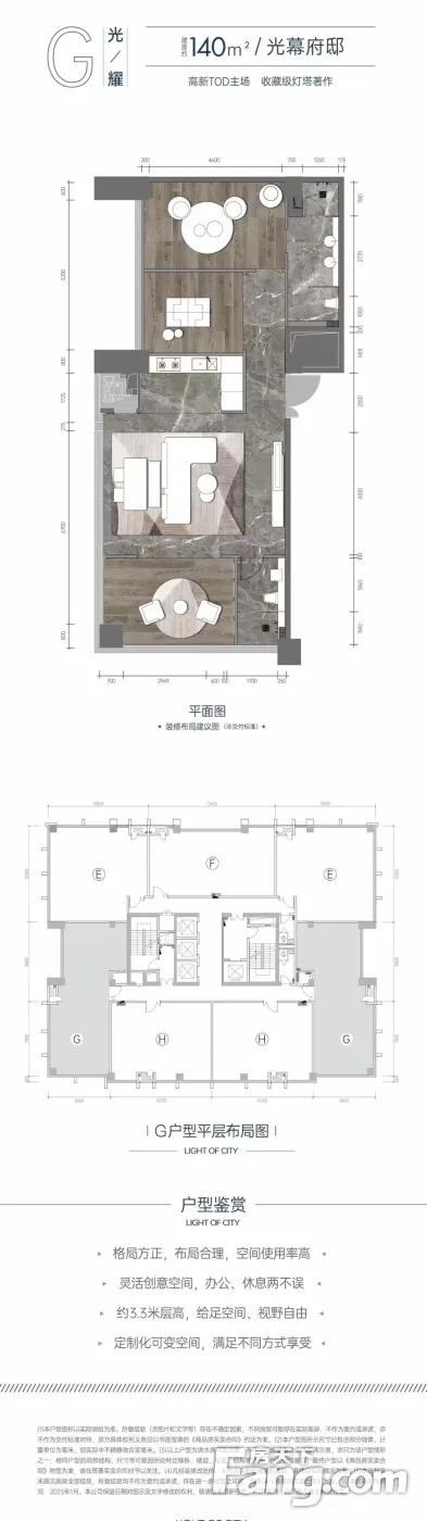 大平层公寓水电气三通 可居家可办公 玻璃外墙四面采光 地铁口