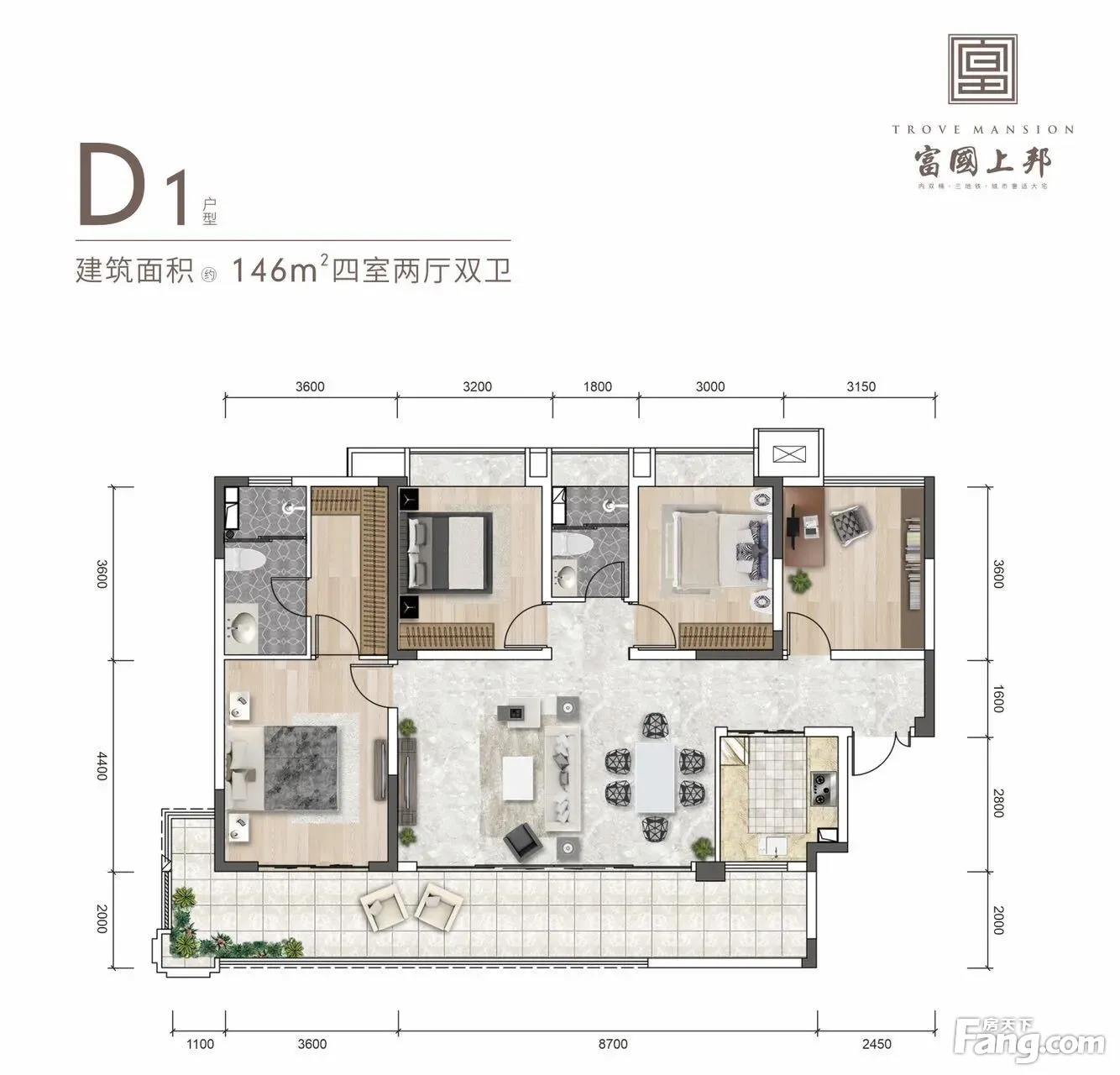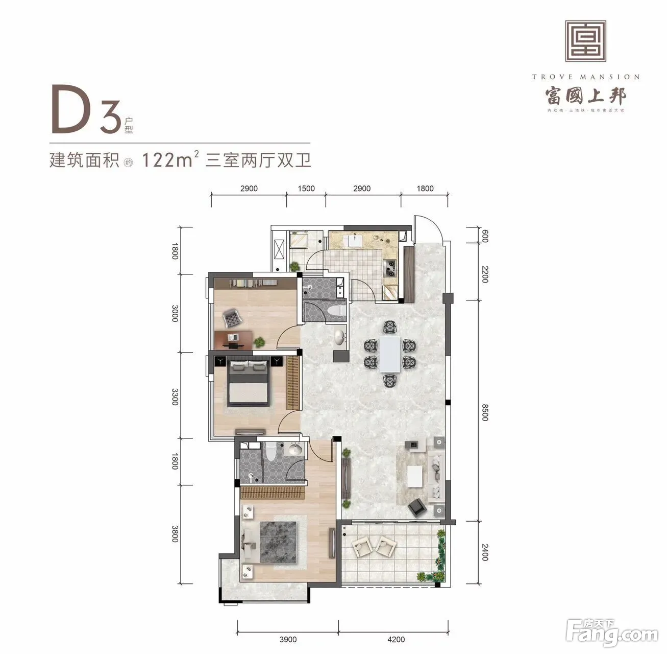 富国上邦户型主要有120平-122平的南北通透,客厅朝南的三居 、146平-154平的南北通透,客厅朝南的四居 。