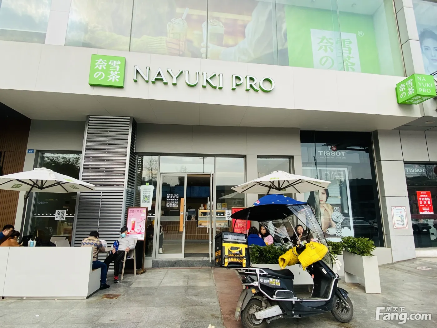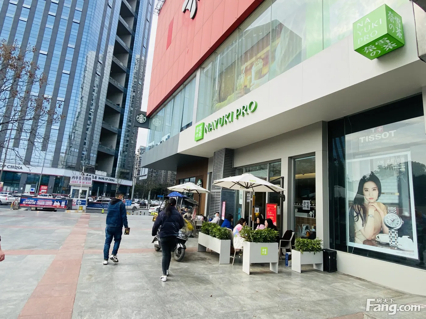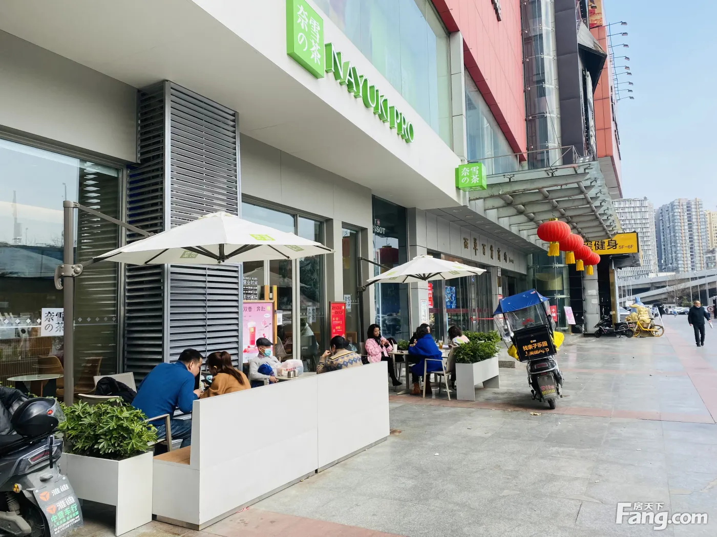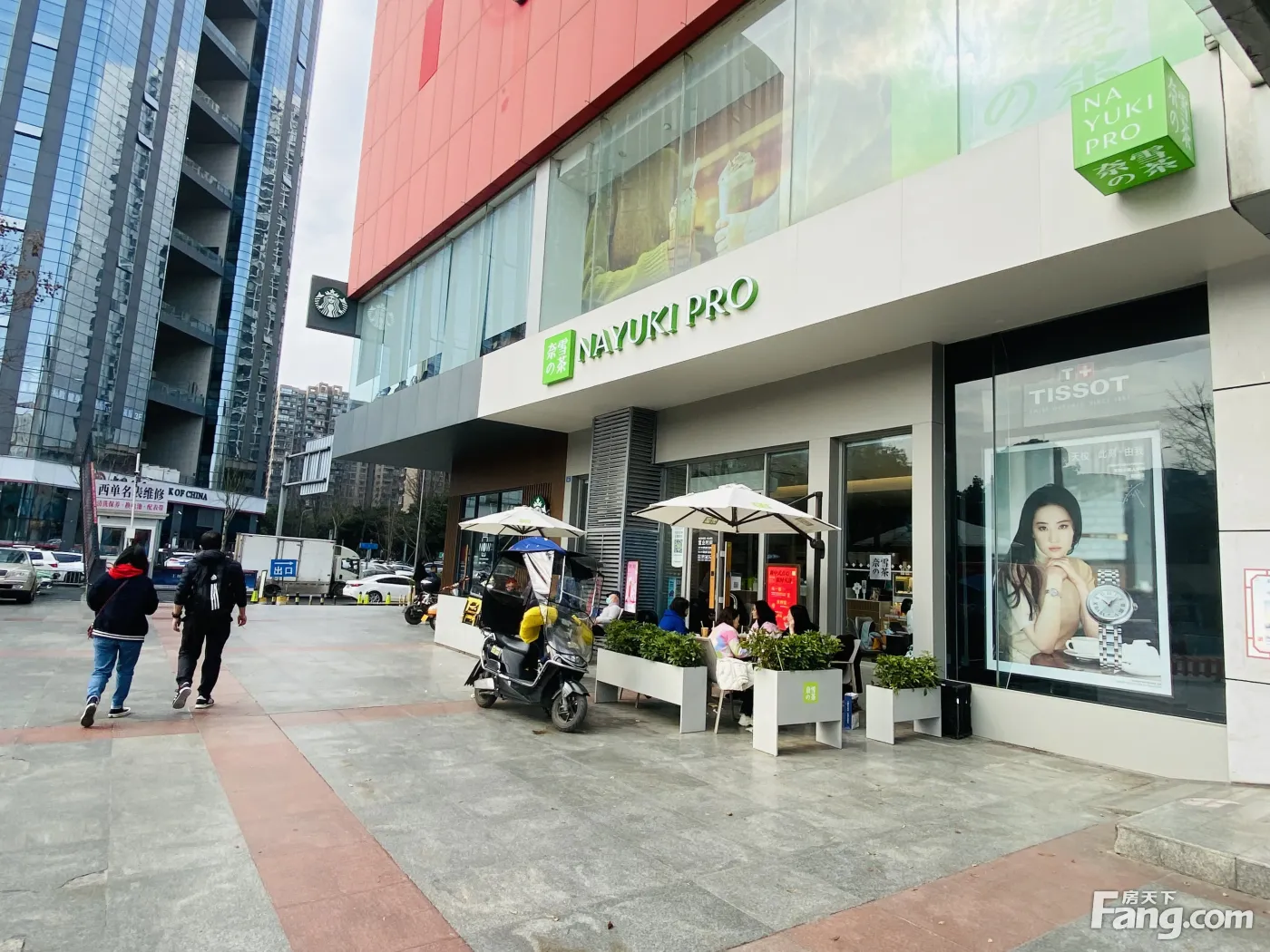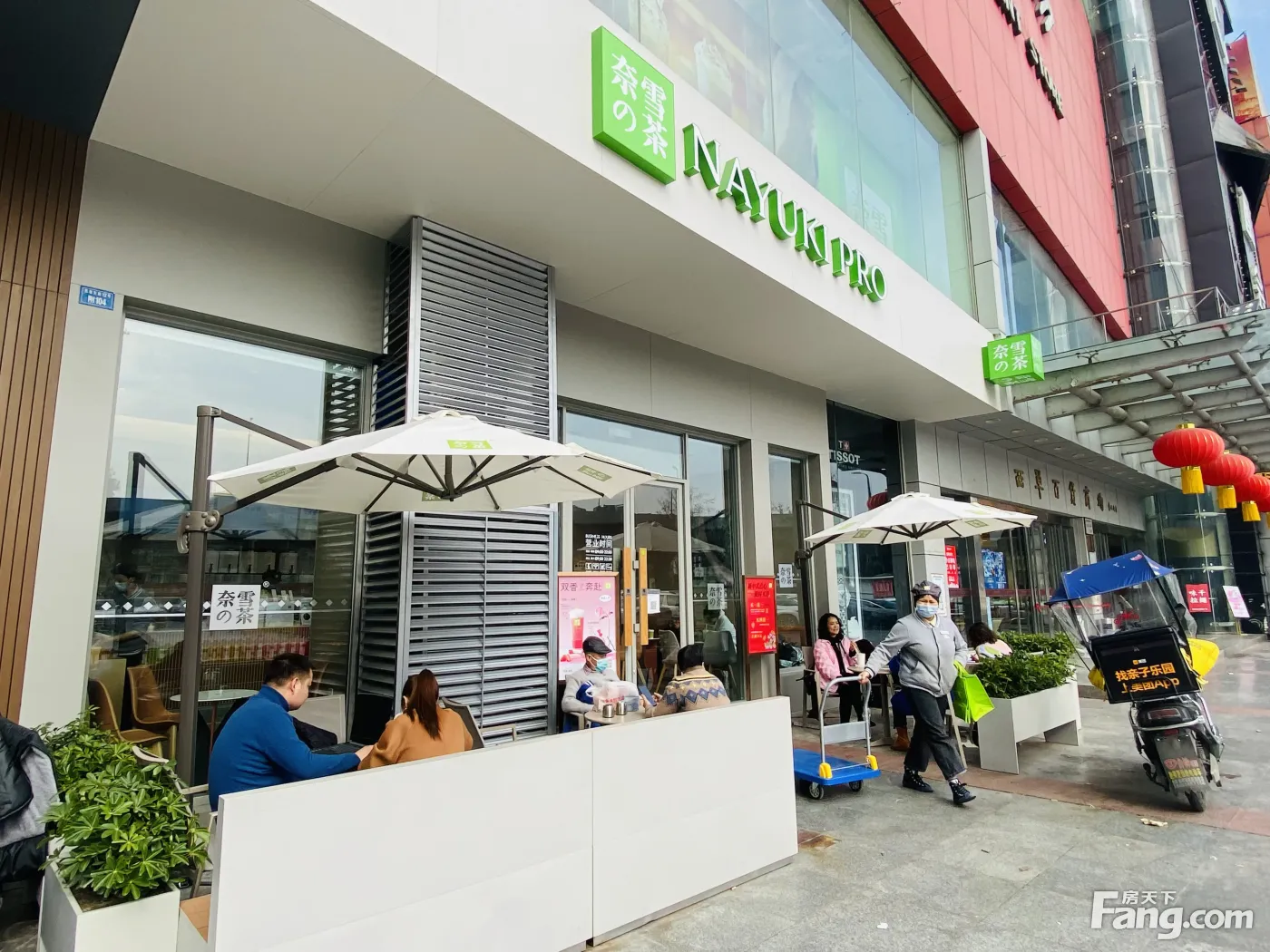 商场大门口(奈雪的茶)年租15万,和星巴克做邻居,超大外摆