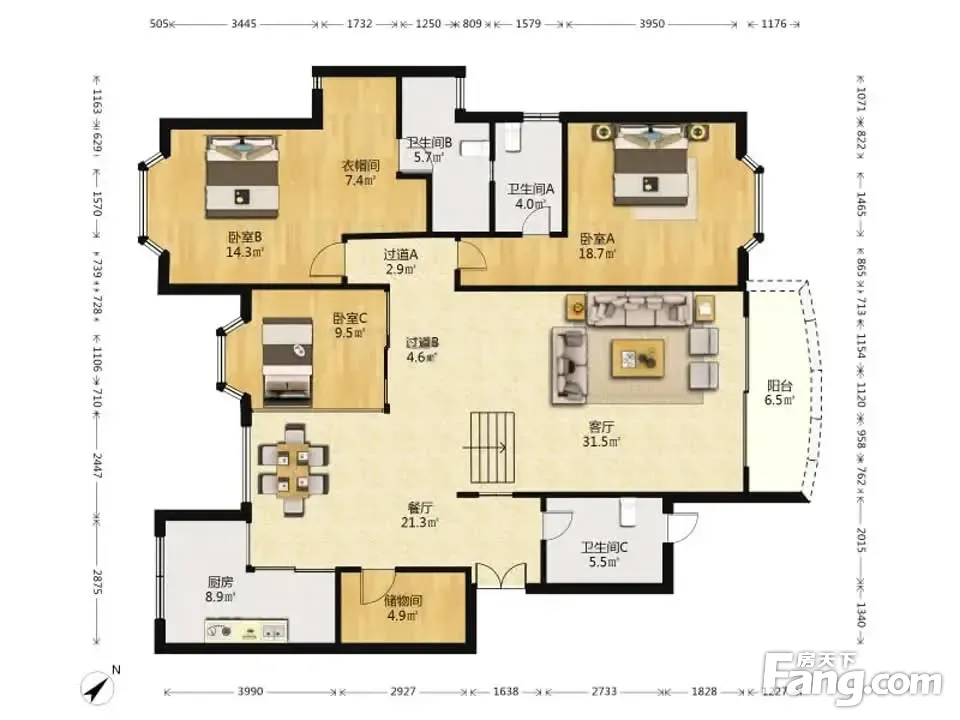 户型齐全,主打明卫,明厨,客厅朝南,全明格局,双阳台,独立衣帽间三居